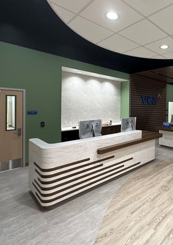 This veterinary clinic turned to us to design, build, and install casework for their urgent care and animal hospital locations. We created tailored solutions for every space, from lobbies and waiting areas to exam rooms and operating tables.
